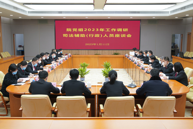 1月11日下午,我院召开党组2023年工作调研—司法辅助(行政)人员座谈会。会议由党组成员、副院长王国新主持,党组成员、政治部主任谷开文,党组成员、副院长张新出席,综合部门负责人、机关党委副书记及各部门法官助理、书记员、司法行政人员、司法警察代表参加。(文:办公室/图:夏佳超)