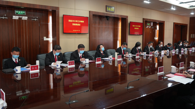 1月17日下午,我院召开党组务虚会,深入调研2023年工作。会议由党组书记、院长郭伟清主持,院领导、审委会专职委员、二级高级法官及各部门负责人参加。(文:办公室/图:夏佳超)