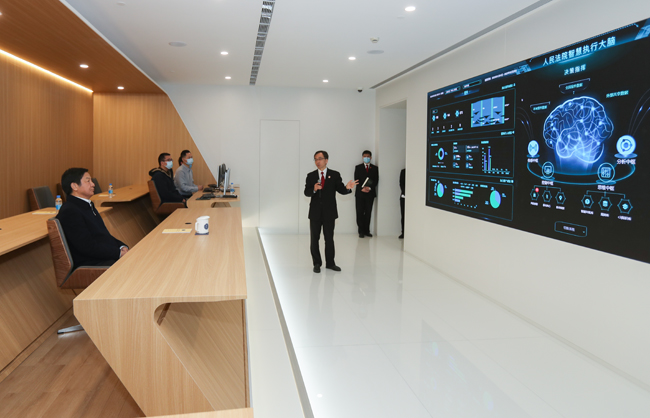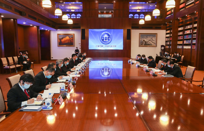 2月22日,市高院党组书记、院长贾宇至我院调研,与我院党组书记、院长郭伟清,党组成员,相关部门负责人座谈交流。 在听取汇报后,贾宇院长肯定了我院各方面工作取得的成效,并对相关工作提出要求:一要深化改革求突破;二要数字赋能立标杆;三要严管厚爱振精神。 座谈会前,贾宇院长实地察看了我院诉讼服务大厅、书记员管理办公室、智慧执行研究基地等场所。(文:高院/图:周婧、夏佳超)