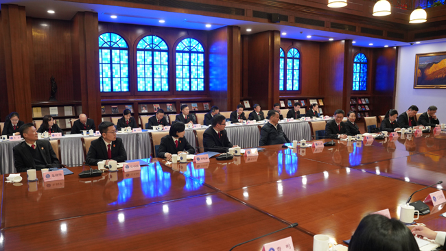 近日,宝山区委常委、政法委书记陈云彬,宝山法院党组书记、院长张晓立一行来我院调研。(文:研究室/图:夏佳超)